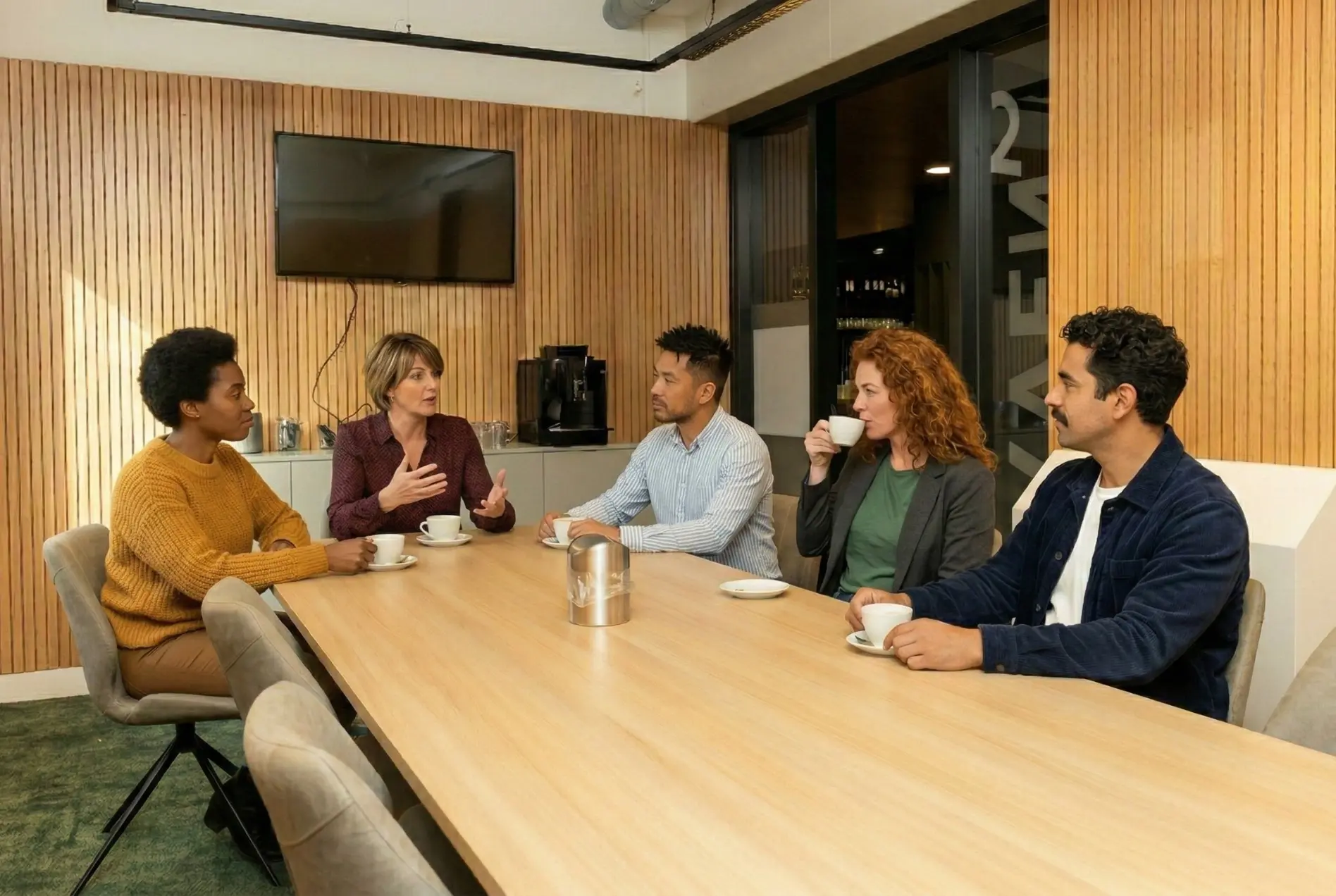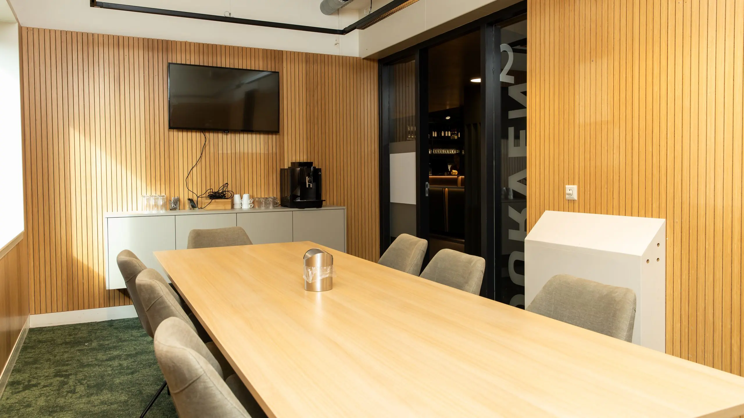 Zaal 1, 2 en 3 zijn compacte vergaderruimtes op de begane grond, geschikt voor teamsessies, workshops en brainstorms. Met plek voor 4 tot 8 personen bieden ze een rustige omgeving om samen te werken. De ruimtes zijn uitgerust met een 55-inch Full HD-scherm en snelle Wi-Fi, wat presentaties en online samenwerken eenvoudig maakt. De warme LED-verlichting draagt bij aan een fijne sfeer waarin concentratie en creativiteit centraal staan. Deze ruimtes bieden een praktische en comfortabele setting voor kleinere bijeenkomsten.